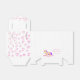 Eine niedliche, gelbe und rosa Rockpferd Baby Duschbox Gastgeschenk. Vielen Dank für die elegante Schrift Typografie. Personalisieren Sie Name und Datum. Rosa Farbtöne für ein Babymädchen, das Party feiert. Großartiges Party für ein neues Baby. Rockpferd Gefälligkeitsbox mit weißem Hintergrund. Auf der Rückseite der Greifbox befindet sich ein Herzmuster.