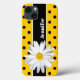 Dieses moderne und trendige gelbe Gehäuse mit schwarzem Polka Dot Muster iPhone 13 hat ein schwarz-weißes Band und eine große, weiße und gelbe Shasta Daisy Blume, zusammen mit Template Text für Sie personalisieren mit Ihrem Monogramm, Initialen, Namen oder anderen Text. Ideal für die lustige junge Frau mit Sass. Wenn Sie Hilfe benötigen, senden Sie eine E-Mail an niteowlstudio@gmail.com.