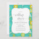 Gelbe und türkisfarbene Polterabend-Einladung mit handschriftlicher Typografie, die schnell und einfach auf Ihre Veranstaltungsspezifikationen zugeschnitten ist.