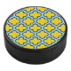Gelb und Baby Blue Trellis, Gitter, Quatrefolie Eishockey Puck