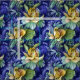 Das ist ein hübsches gelbes und blaues Blumenmuster.