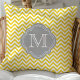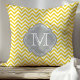Gelb und Grau Zickzack Mit Monogramm Kissen