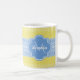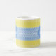 Eine hübsche, gelb lackierte Strick-Muster-Tasse mit hellblauen Streifen, die Sie personalisieren können, indem Sie Ihren Namen und mit Monogramm erste zu. Dies ist Teil der Sammlung Meadowlark und Little Boy Blue Strick. Flachbild-Bild NICHT mit Garn oder Spitzen hergestellt.