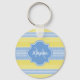 Ein hübscher, gelber Strick-Muster einfaches Schlüsselanhänger mit hellblauen Streifen, die Sie durch Hinzufügen Ihres Namens und mit Monogramm Initialen zu personalisieren. Dies ist Teil der Sammlung Meadowlark und Little Boy Blue Strick. Flachbild-Bild NICHT mit Garn oder Spitzen hergestellt.