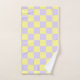 Abstrakte Digitalkunst pastellgelber und lila Quadrate in karierter Formation.