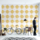 Die gelbe und orangefarbene Retrosonne mit Vintagen Farbtupfern.