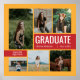 Das stilvolle Abschluss-Design umfasst sechs Fotos mit dem "GRADUATE" als einem großen Schwerpunkt. Personalisieren Sie den modernen Text mit dem Namen, der Schule und dem Unterrichtsjahr Ihres Abschlusses. Passen Sie die Farben des Bilderrahmens und der Boxen auf der Vorderseite und die Boxen auf der Rückseite an, um den Schulfarben zu entsprechen oder sich mit der Fotografie abzustimmen. Erhältlich in den beliebtesten und gebräuchlichsten Schulfarbenkombinationen: grün/gelb, rot/gelb, rot/gold, blau/gelb, mariniert/gold, schwarz/gold, lila/gelb, rot/silber und rot/schwarz. Passende Produkte und andere Farben verfügbar.