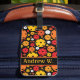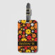 Gelbe, rote und orangefarbene Pickleballs auf schwarzem Hintergrund. Perfekt als Geschenk für Pickleball Spieler. Gepäcktag mit Pickleball-Motiv mit individuelle Name Happy in /using und besten Wünschen für Ihre zukünftigen Spiele!