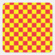 Abstrakte digitale Kunst von gelben und roten Quadraten in einer karierten Formation.