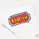 Gelb und rot, geschlossenes Schild. Dieses Design sieht auf diesen Aufklebern wirklich effektiv aus
