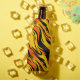 Diese Flasche hat cooler ein gelb-schwarz gestreiftes Design.