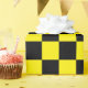 Abstrakte digitale Kunst von gelben und schwarzen Quadraten in einer karierten Bildung.