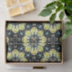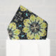 Nahtlos dekoratives geometrisches Muster mit gelb stilisierten geometrischen Blume auf schwarz-blauem Hintergrund.
