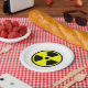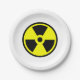 Strahlungssymbol in schwarzem Set über einem hellgelben Hintergrund