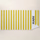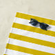 Ein auffälliges gestreiftes Strandtuch mit gelben und weißen Streifen. Personalisieren Sie sich mit Ihrem Namen.