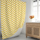 Das Badezimmer ist mit einem Zickzack Duschvorhang in Gelb und Weiß ausgestattet. Das gewagte geometrische Muster und die lebendige Farbe schaffen eine unterhaltsame und dynamische Atmosphäre, die sich perfekt für ein erfrischendes Bad oder eine erfrischende Dusche eignet. Dieser Duschvorhang aus langlebigen, wasserfesten Stoffen ist elegant und funktionell, was dem Badezimmer einen Pop an Persönlichkeit verleiht.