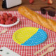 Gelbblau, Zickzack Farbblockmuster Pappteller