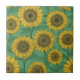 Gelbe abstrakte Sonnenblumenmuster auf grüner Keramik