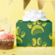 Gelber Pfotenprint in Form von Sonnenblumen. Maßgeschneiderte Packpapierrollen.