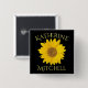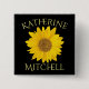 Ein nahes Foto eines Single mit hellgelber Sonnenblume und Vorlagen für Vor- und Nachnamen auf schwarzem Hintergrund.