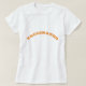 Weißer T - Shirt mit orangefarbenem, abgerundetem Text