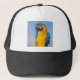 Gelbbrustara macaw oder blue-gold macaw (Ara arararauna) auf der Holzterrasse, von vorne betrachtet