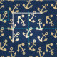 Navy blauer Stoff mit sonnengelbem Ankerprint. Dieses klassische Referenzmaterial zeichnet sich durch eine sommerliche Farbkombination aus hellgelben Ankern und marinefarbenem Hintergrund aus. Klassisches nautisches Ankermuster mit viel Bewegung und Charme im Muster. Nutzen Sie es für Ihre segelthematischen kreativen Projekte.