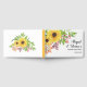 Gelbe Aquarellsonnenblumen und Typografie rustikales Land fallen florale Hochzeitsgast-Buch. Es zeigt prächtige Sonnenblumen in gelben und herbstlichen Blättern. Die Wirbelsäule ist kräftig gelb.