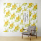 Gelbe Aquarellfarben Blume Blumenmuster Hochzeit Brautparty Wandteppiche. Ein hübsches Blumenmuster mit einem Strauß gelber Aquarellkaktus-Blume und prächtigen Blätter, Ihren Namen in einer Schriftzeichen und dem Datum Ihrer Hochzeit.