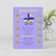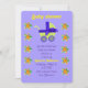 Gelbe Babywagen, rosa, lila genähte Blume Einladung