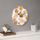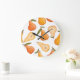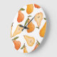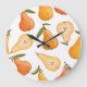 Gelbe Birnen: Nahtloser weißer Hintergrund. Große Wanduhr