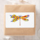 Künstlerisch bemalt, florale Libelle in kontrastierender Orange und lila mit gelben, hellen, blühenden kalifornischen Mohn und blauen Wildblumen auf weißem Hintergrund.