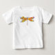 Künstlerisch bemalt, florale Libelle in kontrastierender Orange und lila mit gelben, hellen, blühenden kalifornischen Mohn und blauen Wildblumen auf weißem Hintergrund.