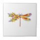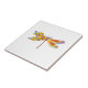 Künstlerisch bemalt, florale Libelle in kontrastierender Orange und lila mit gelben, hellen, blühenden kalifornischen Mohn und blauen Wildblumen auf weißem Hintergrund.