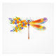 Künstlerisch bemalt, florale Libelle in kontrastierender Orange und lila mit gelben, hellen, blühenden kalifornischen Mohn und blauen Wildblumen auf weißem Hintergrund.