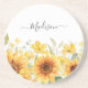 Vorstellung unserer Monogram Gelben Blume Sonnenblumen Blütenblume Botanischer Untersetzer. Mit der Aquarelldarstellung des gelben Sonnenblumengartens, geben Sie ihm einen botanischen Akzent. Mit einem eleganten Script-Schriftart-Monogramm, das individuell angepasst werden kann, kann es ein großes Geschenk für Naturliebhaber machen. Personalisiert mit ihrem Namen für eine einzigartige Touch.