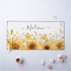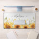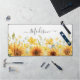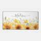 Vorstellung unserer Monogram Gelben Blume Sonnenblumen Blütenflora Botanische Schreibtischmatte. Mit der Aquarelldarstellung des gelben Sonnenblumengartens, geben Sie ihm einen botanischen Akzent. Mit einem eleganten Script-Schriftart-Monogramm, das individuell angepasst werden kann, kann es ein großes Geschenk für Naturliebhaber machen. Personalisiert mit ihrem Namen für eine einzigartige Touch.