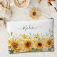 Vorstellung unserer Monogram Gelben Blume Sonnenblume Blütenblume Botanisches Accessoire Pouch. Mit der Aquarelldarstellung des gelben Sonnenblumengartens, geben Sie ihm einen botanischen Akzent. Mit einem eleganten Script-Schriftart-Monogramm, das individuell angepasst werden kann, kann es ein großes Geschenk für Naturliebhaber machen. Personalisiert mit ihrem Namen für eine einzigartige Touch.
