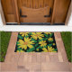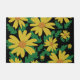 Ein helles Blumendesign mit gelben, matten Blume und grünen Blätter, die in einem Muster angeordnet sind.