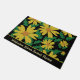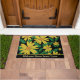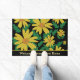 Ein helles Blumendesign mit gelben, matten Blume und grünen Blätter, die in einem Muster angeordnet sind.