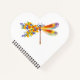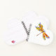 Künstlerisch bemalt, florale Libelle in kontrastierender Orange und lila mit gelben, hellen, blühenden kalifornischen Mohn und blauen Wildblumen auf weißem Hintergrund.