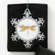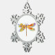 Künstlerisch bemalt, florale Libelle in kontrastierender Orange und lila mit gelben, hellen, blühenden kalifornischen Mohn und blauen Wildblumen auf weißem Hintergrund.