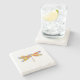 Künstlerisch bemalt, florale Libelle in kontrastierender Orange und lila mit gelben, hellen, blühenden kalifornischen Mohn und blauen Wildblumen auf weißem Hintergrund.