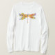 Künstlerisch bemalt, florale Libelle in kontrastierender Orange und lila mit gelben, hellen, blühenden kalifornischen Mohn und blauen Wildblumen auf weißem Hintergrund.