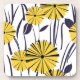 Seamless retro style illustration with yellow flowers and blue leaves on background