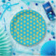 Gelbe Blumen auf türkisfarbenen Hintergrund geometrische Elemente Muster