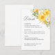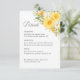 Teilen Sie wichtige Hochzeitsinformationen auf elegante und organisierte Weise mit dieser gelben floralen Hochzeitsdetails-Karte, die mit weichen Aquarell-Gelbröschen und zarten Gartenwildblumen gestaltet ist. Dieses romantische botanische Design ergänzt gelbe florale Hochzeitseinladungen und liefert den Gästen wichtige Informationen zur Zeremonie und zum Empfang.