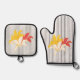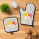 Gelbe Blumen Schwarz-weiß Streifen Ofenhandschuh & Topflappen-Set