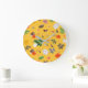 Gelbe Blumen und weiße Rosen 10 Große Wanduhr