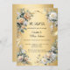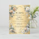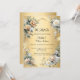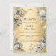 Ein Imitat goldener Hintergrund. Die Einrichtung besteht aus gelben und weißen Blumen und einem vergoldeten Farbband der Imitate. Personalisieren und fügen Sie einen Namen und Details. Perfekt für ein 50-jähriges Hochzeitstag